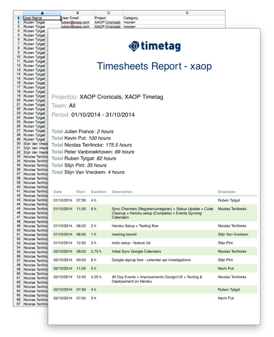 Easily build timesheet reports containing a breakdown of tasks accomplished throughout a project during a chosen time period. Use this to improve planning for future projects, create invoices for customers, or allocate costs.